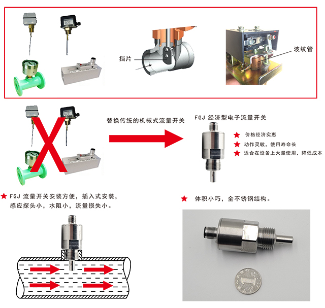 2、替代挡板式流量开关,动作灵敏,使用寿命长