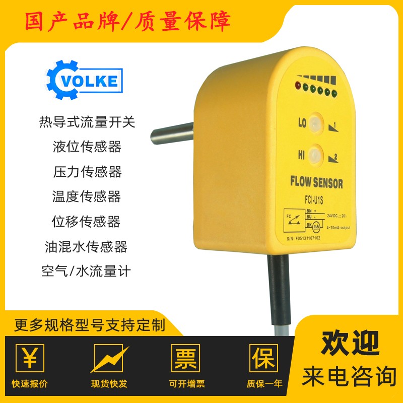 FCI热式流量开关,可以很方便的设定对应流速的4~20mA电流信号,旋开防护螺丝,用配备的螺丝刀调节设置旋钮可以设定流量低点和高点